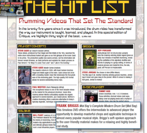 Modern Drummer Magazine recognized the Complete Modern Drum Set instructional package as one that helped set the standard for the industry, and has consistently given my educational books 4 star reviews, and a featured interview. Thank you Mike Haid!