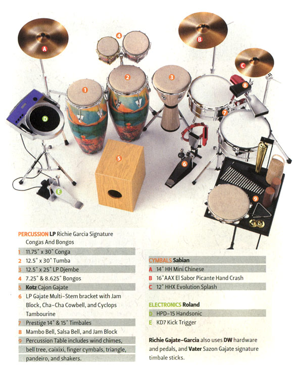 Richie was voted to be one of the top Latin percussionists by his peers in the Modern Drummer Reader’s Poll and one of the top Rock percussionists in DRUM! Magazine by its readers.